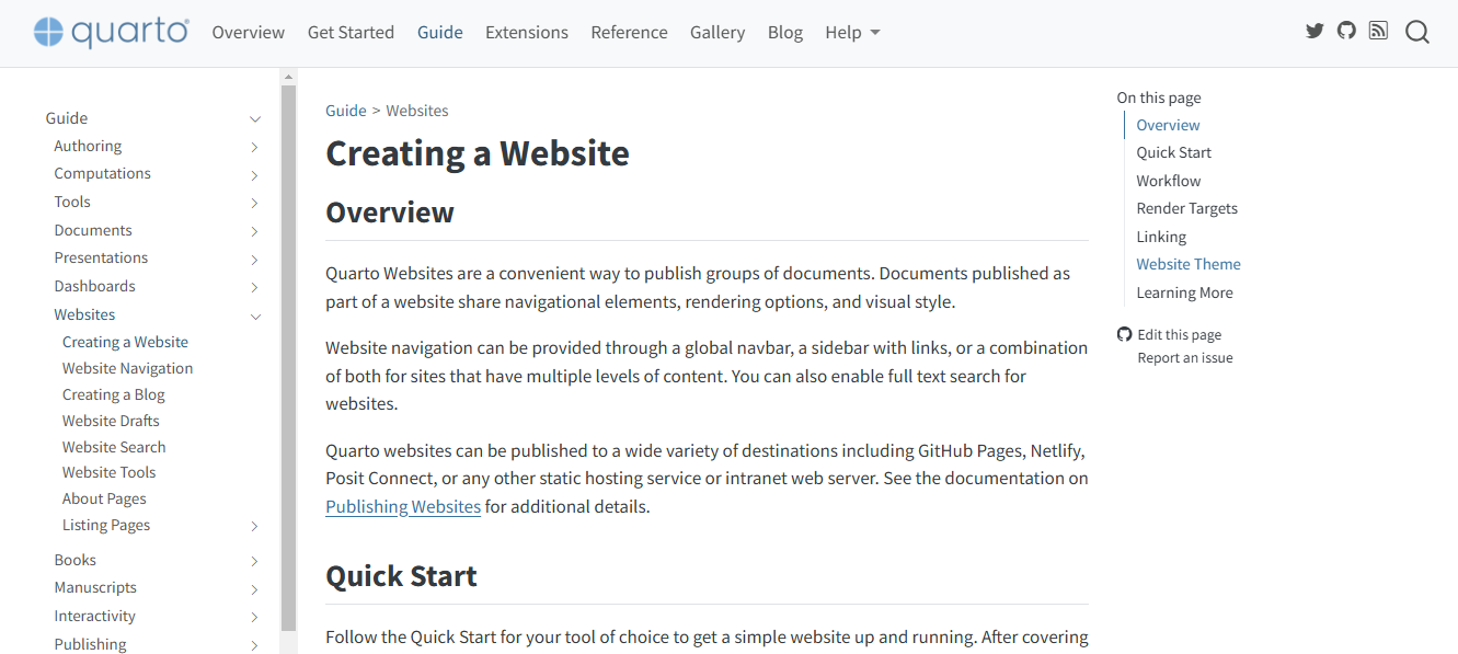 Overall, the first steps to creating a blog are not complex due to the long and detailed guide created by the team that developed Quarto.